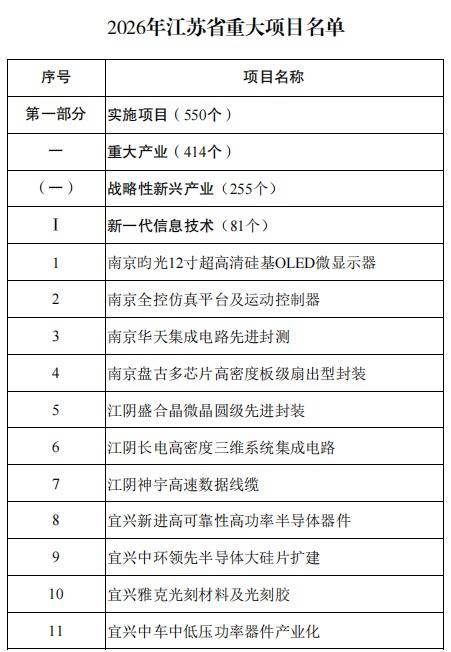 2026年江苏省重大项目清单(部分)附:2026年江苏省重大项目名单